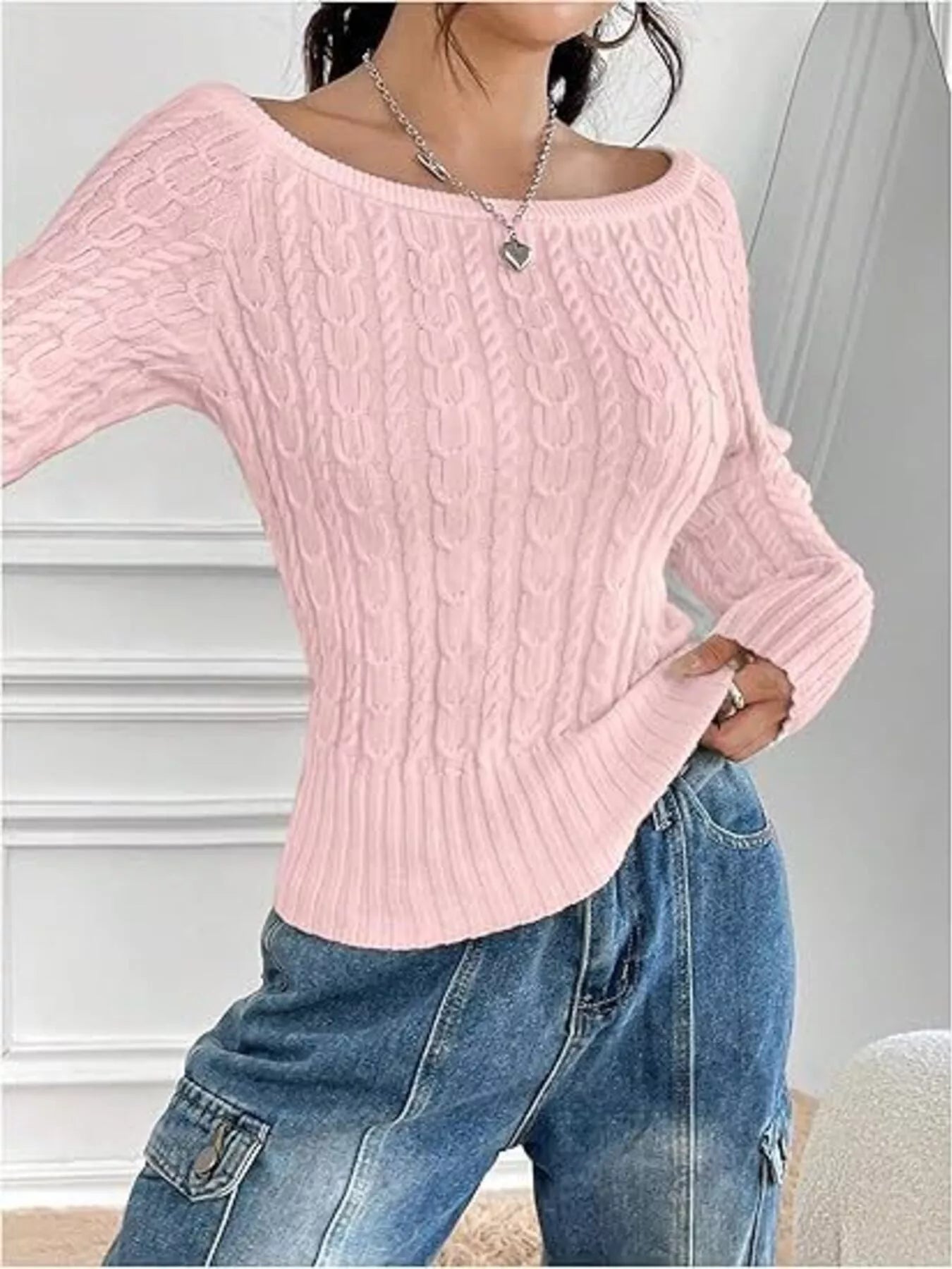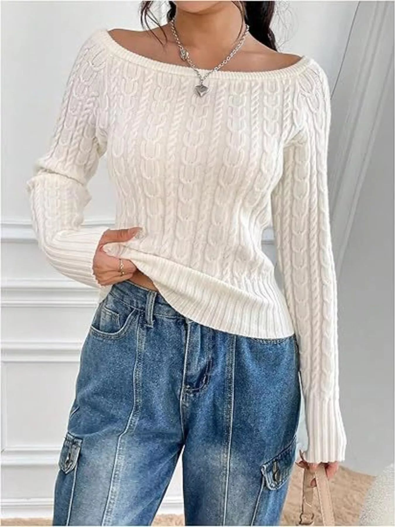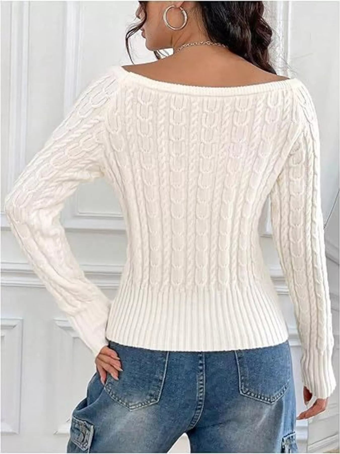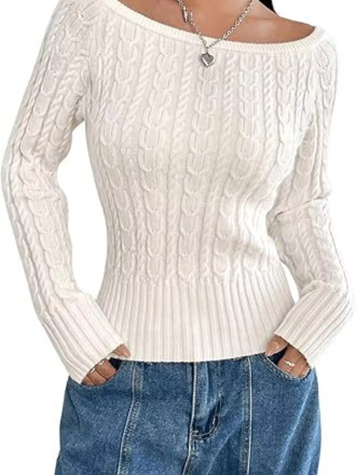 Cable-Knit Boat Neck Sweater