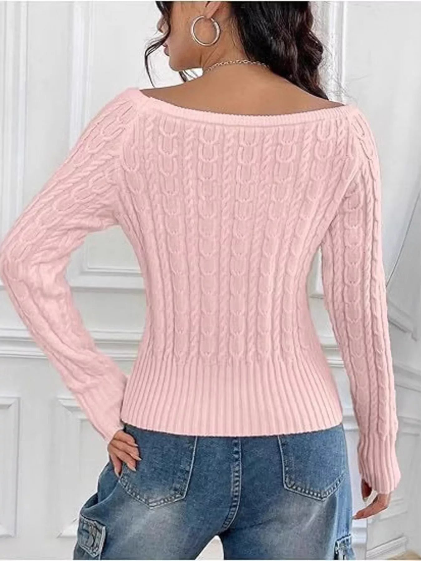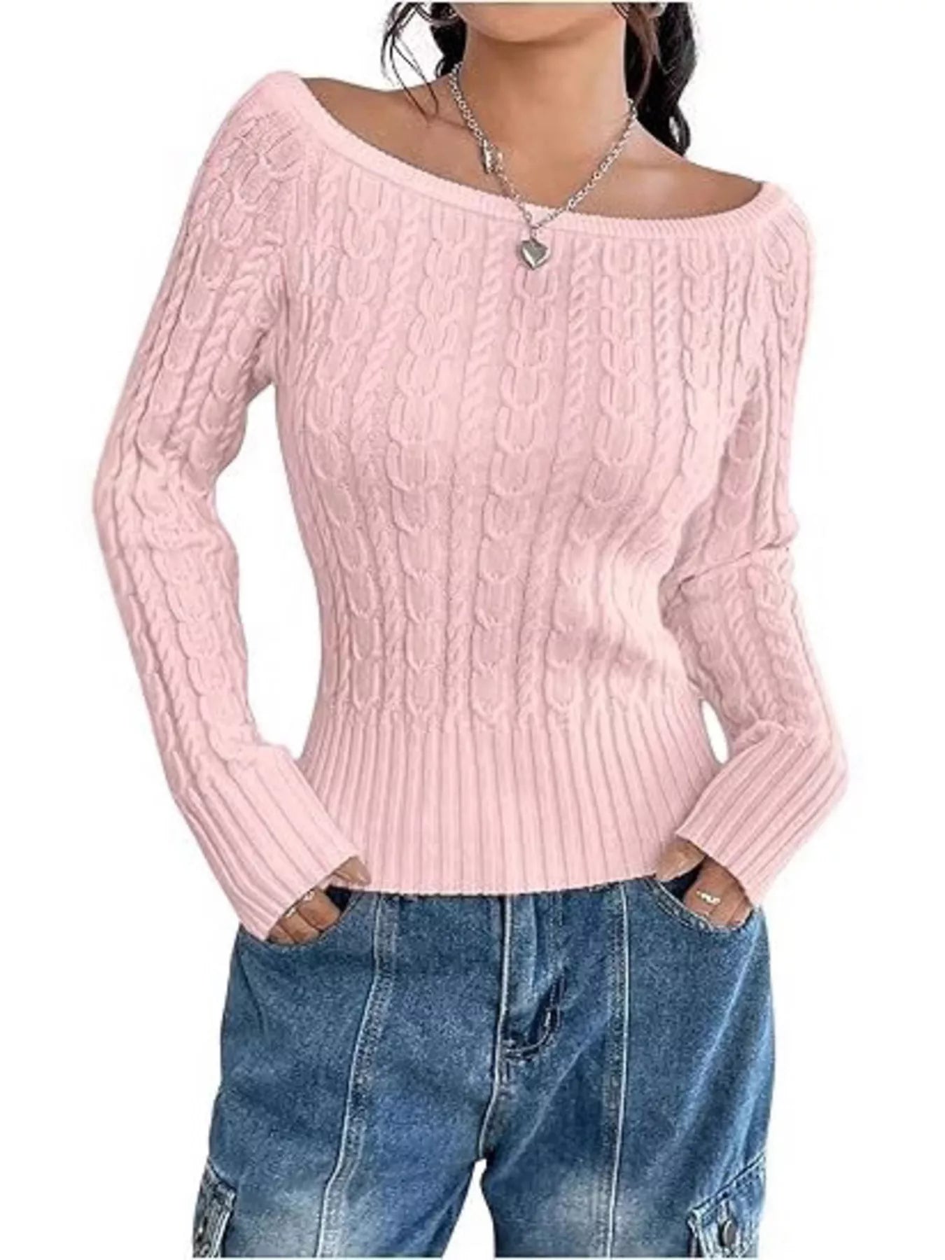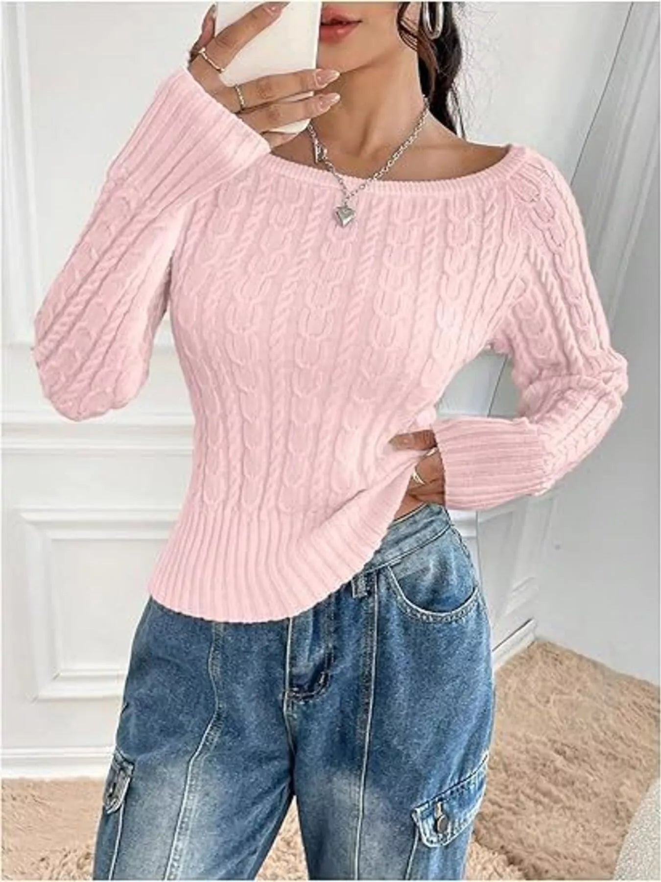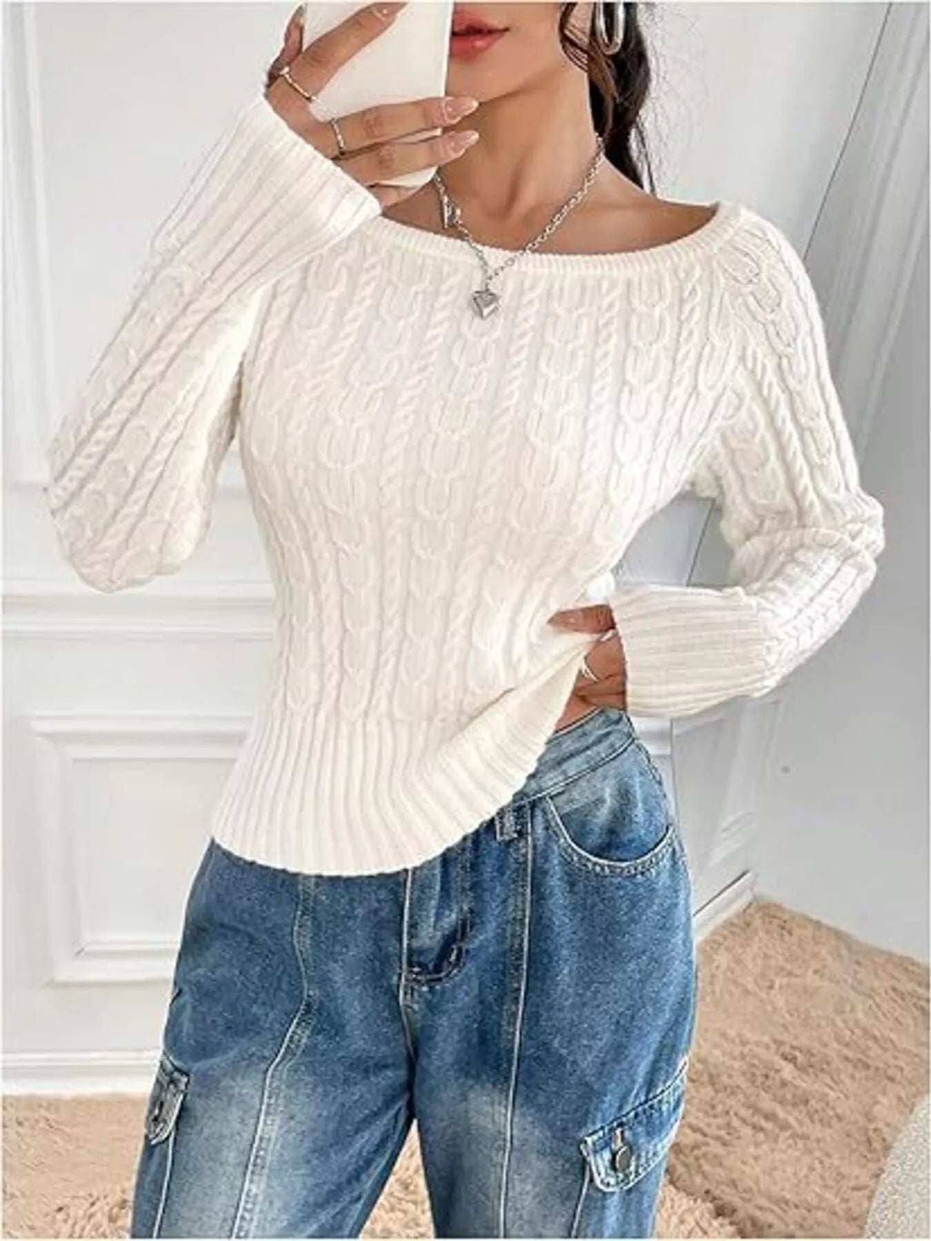 Cable-Knit Boat Neck Sweater