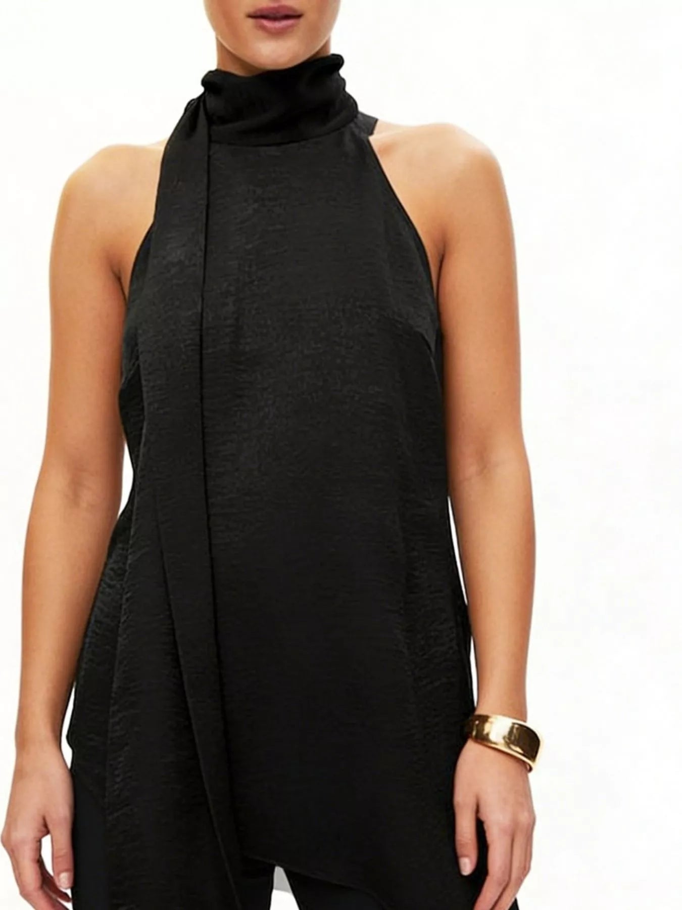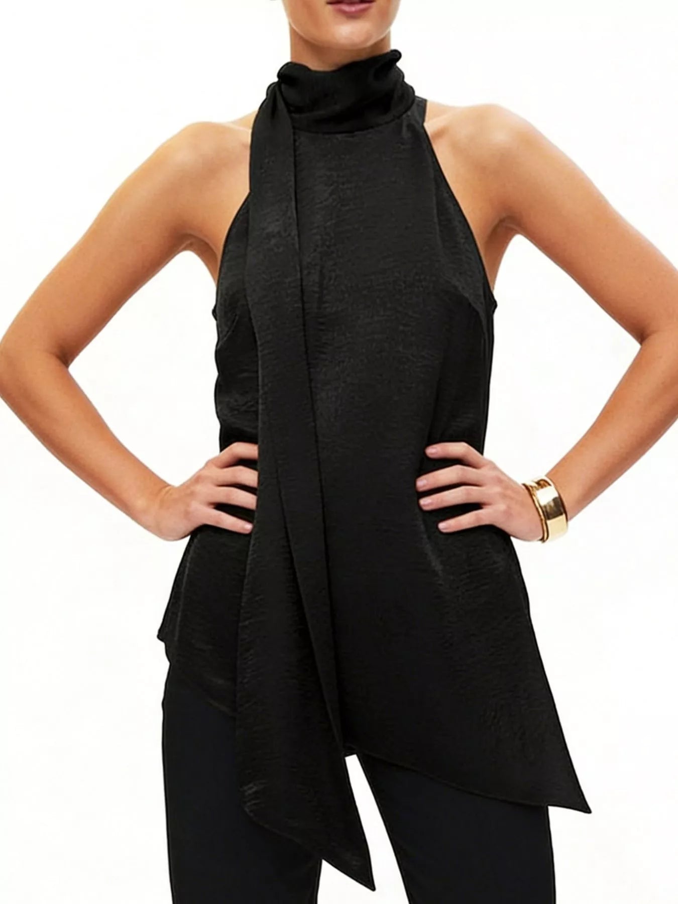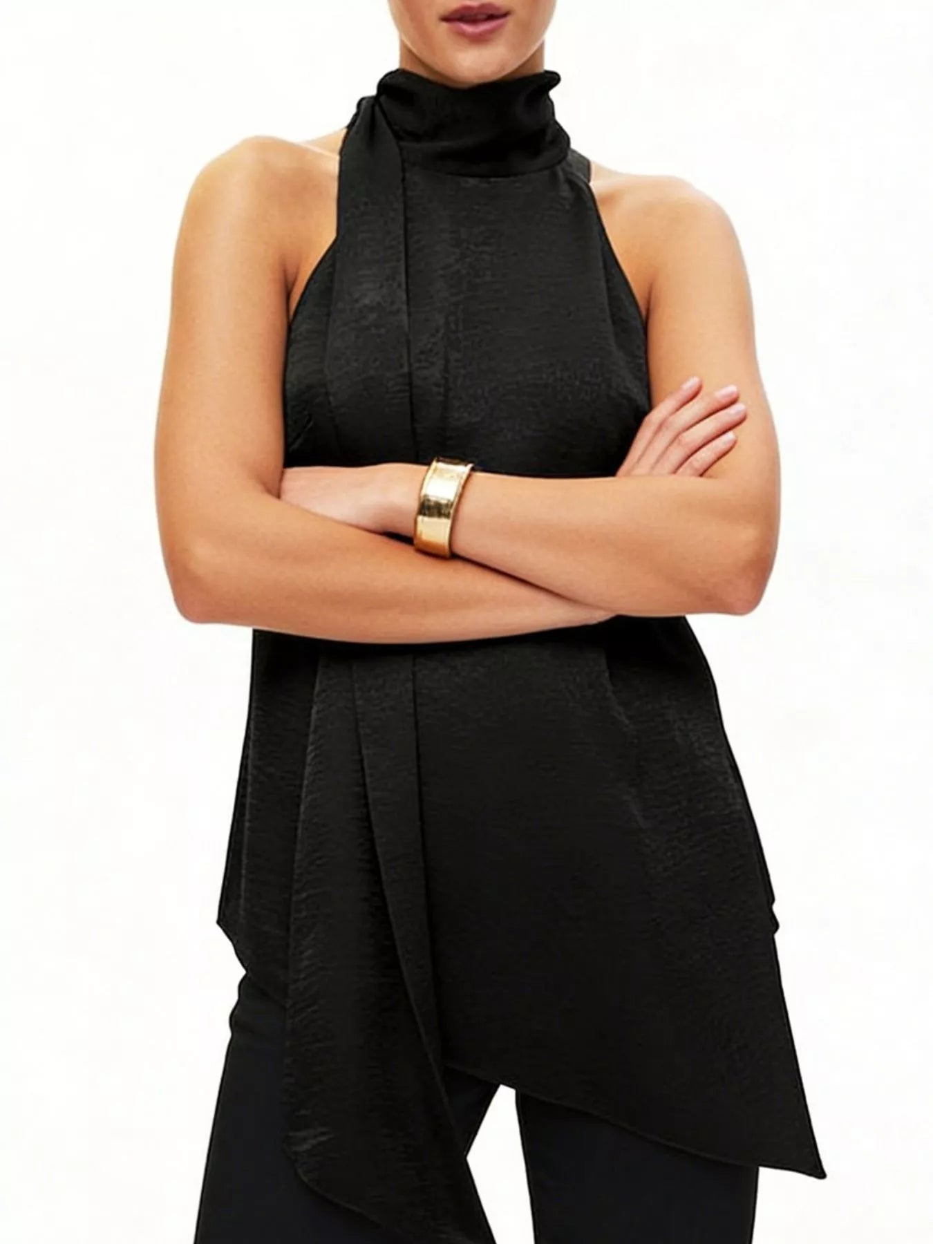 Elegant Halter Neck Asymmetrical Sleeveless Top