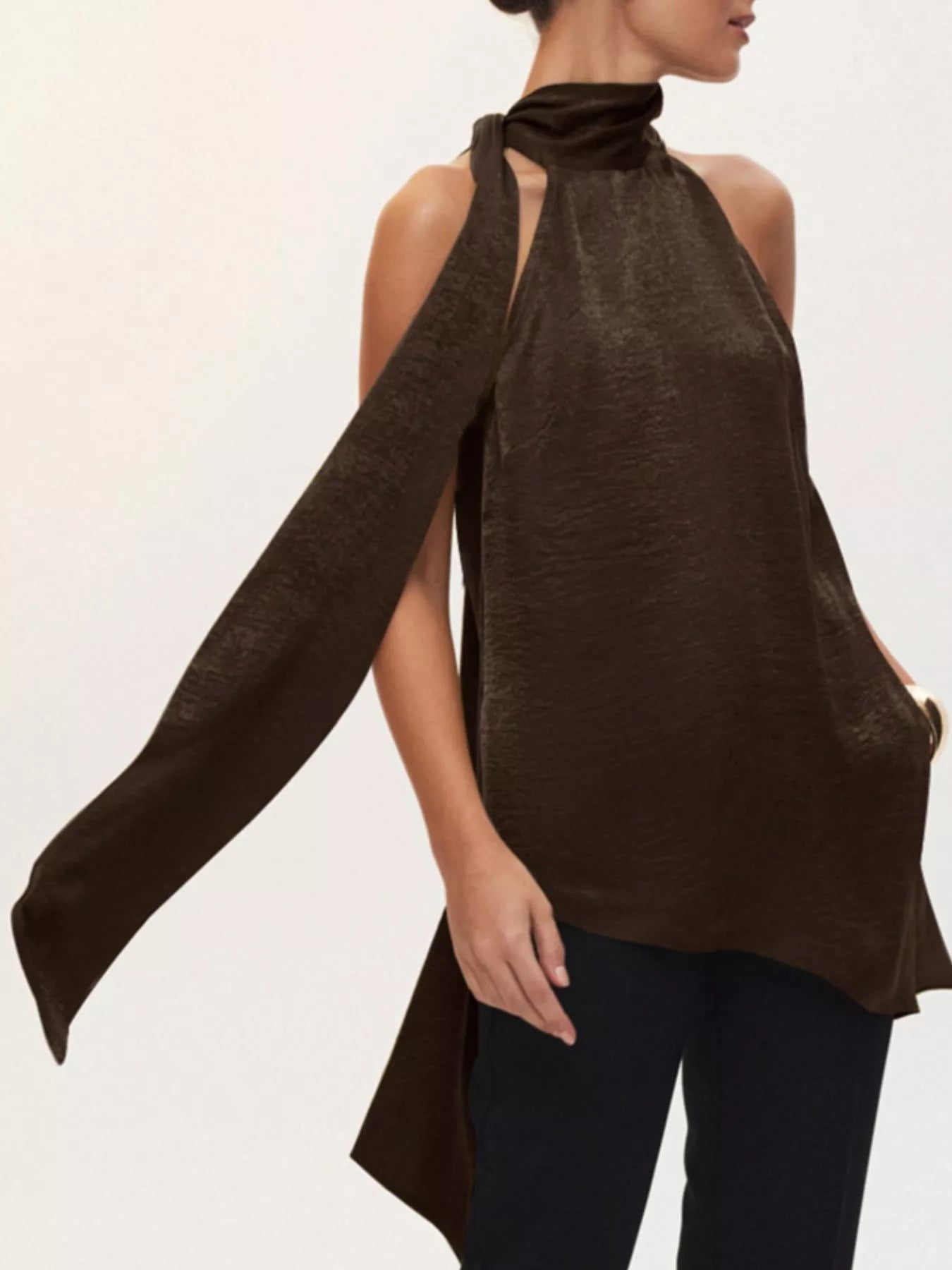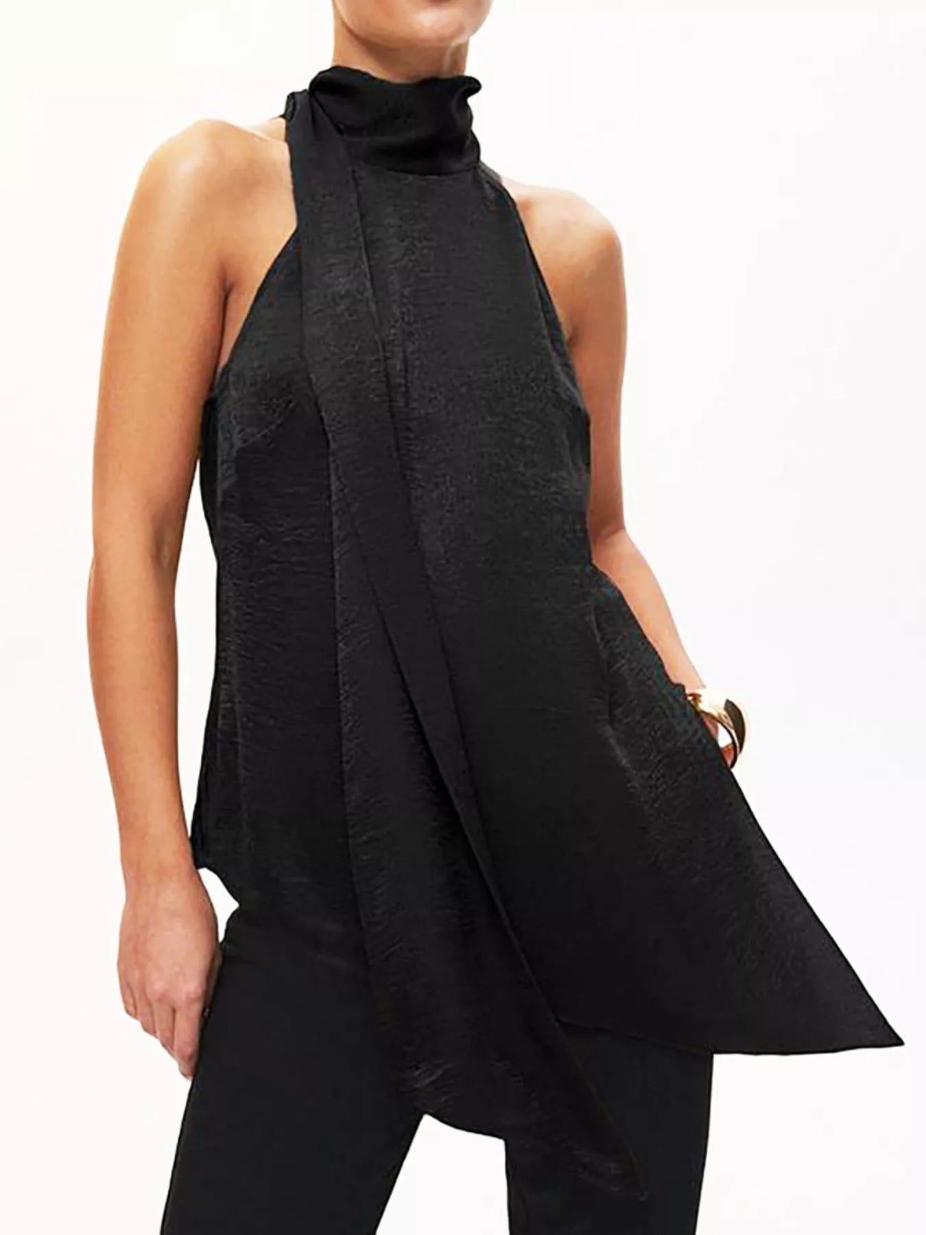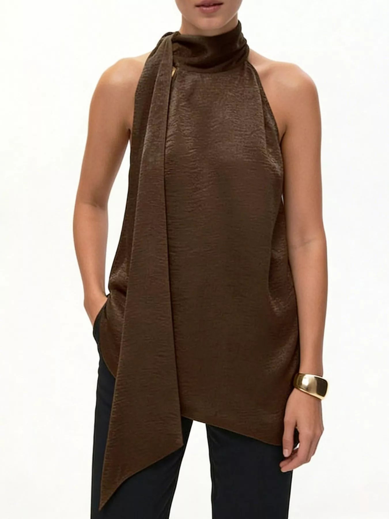Elegant Halter Neck Asymmetrical Sleeveless Top