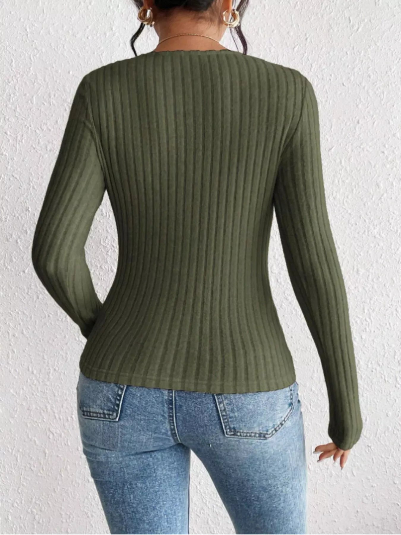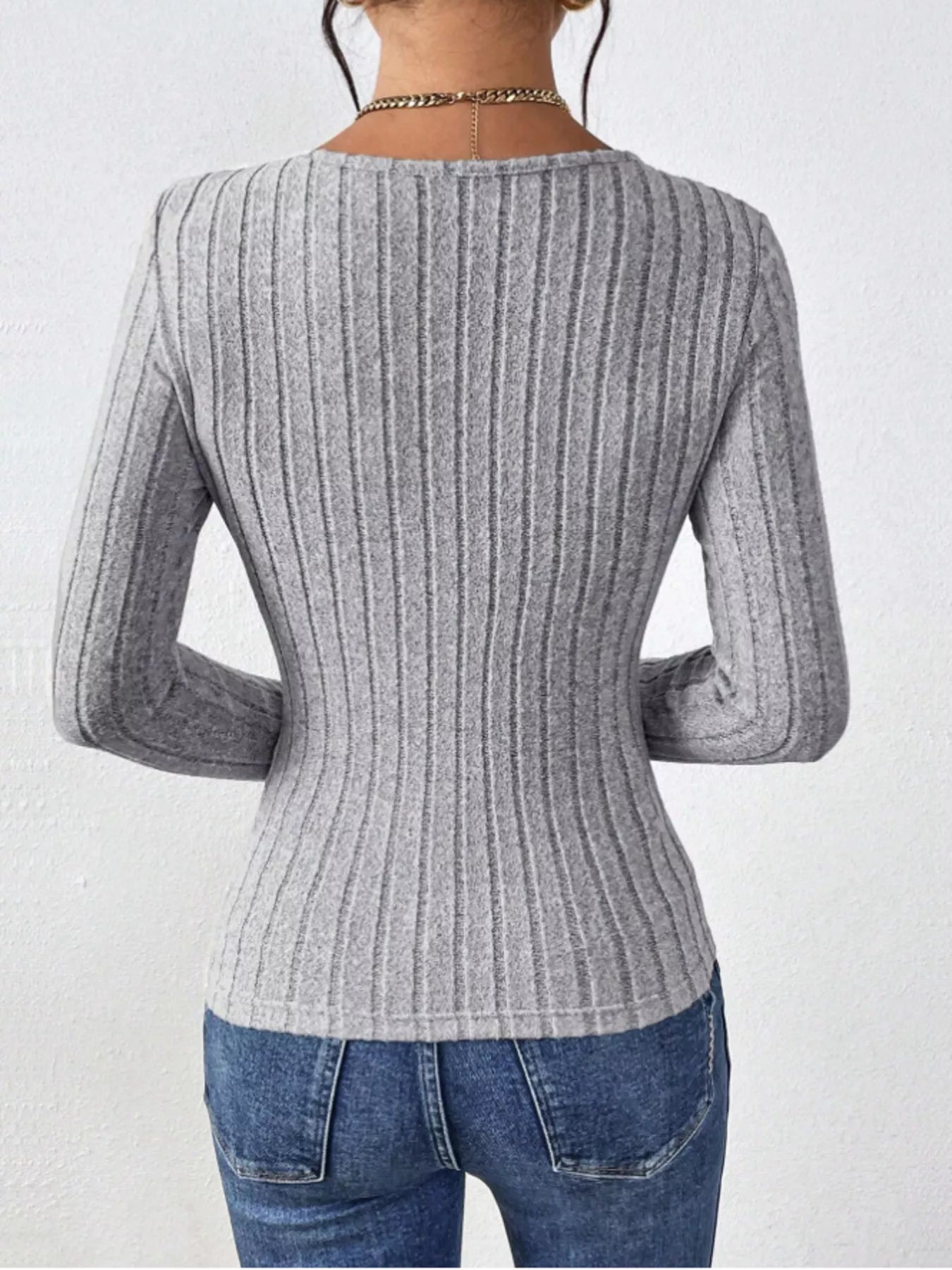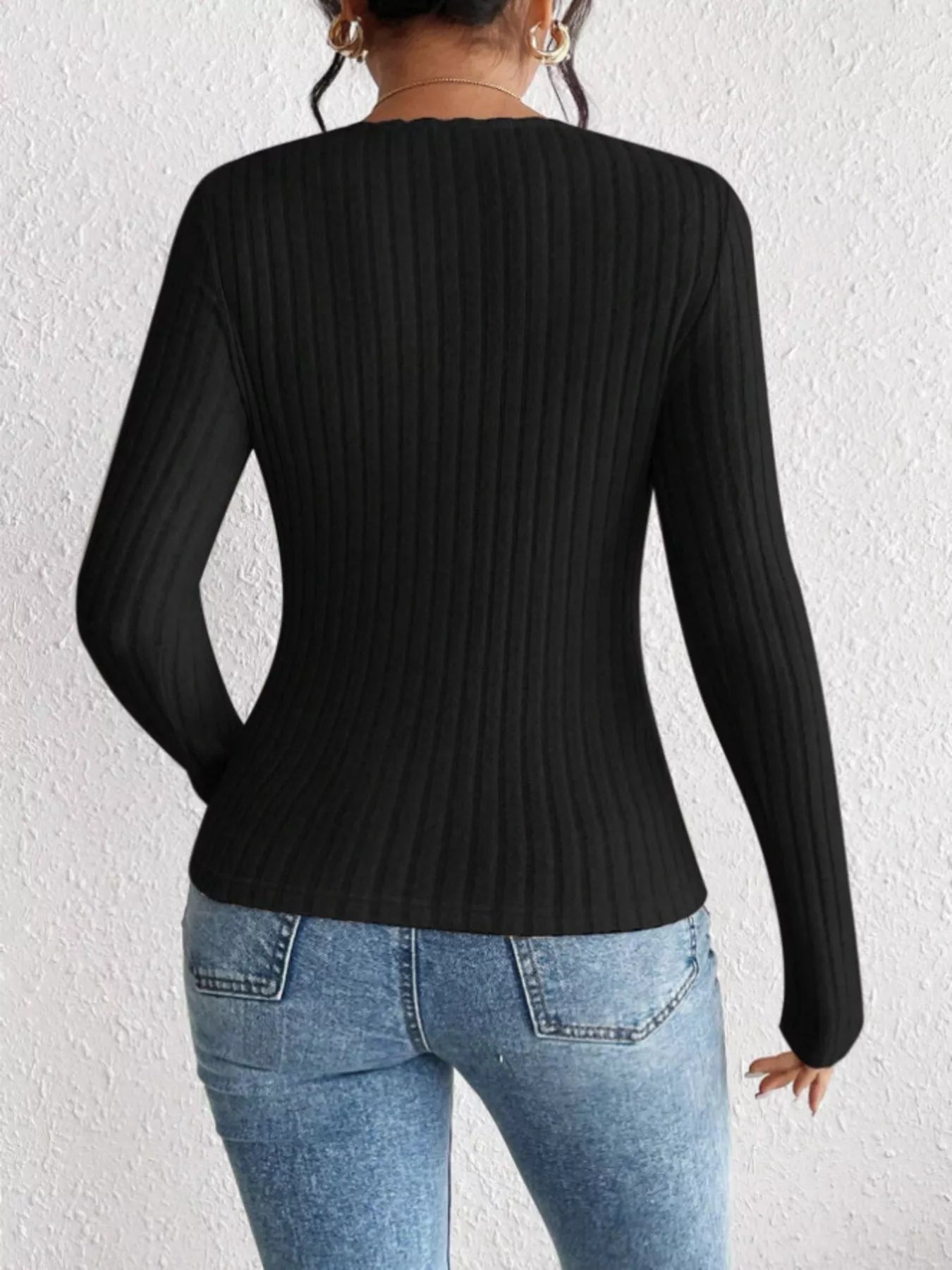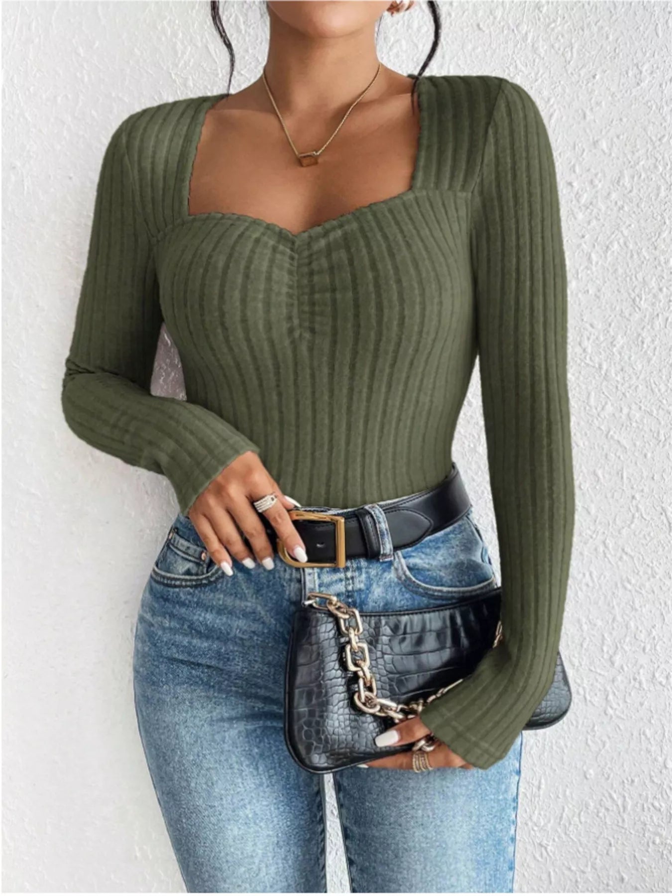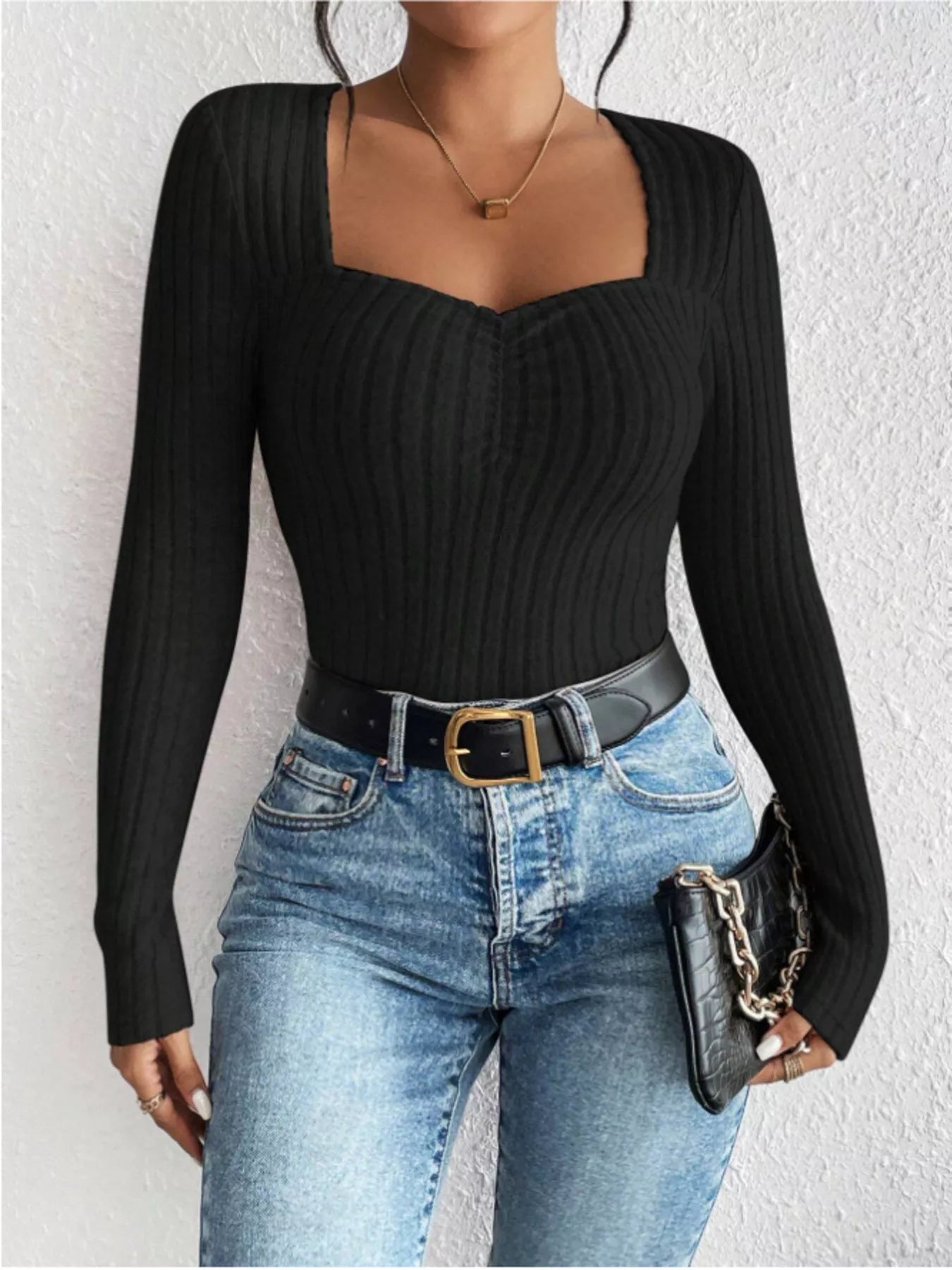 Ribbed Sweetheart Neck Long Sleeve T-Shirt